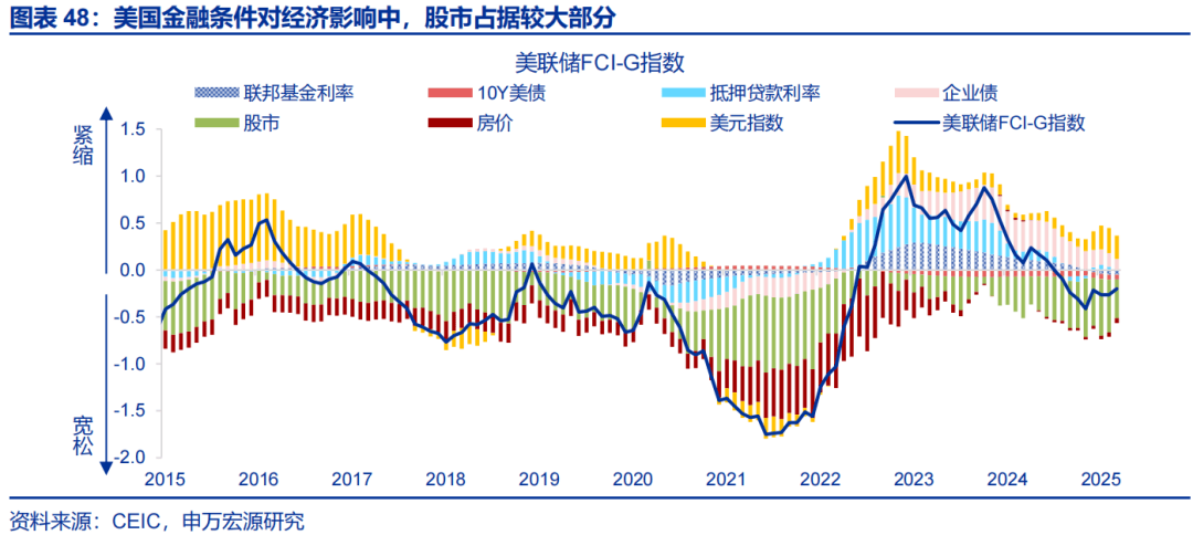 金融压力的增强可能抑制投资,强化经济下行风险。自2025年初以来,美国金融市场动荡,金融压力/状况恶化,趋紧的金融环境不利于企业投资、工业产出。若对等关税继续加剧美国金融脆弱性,则经济下行风险可能强化、通胀上行风险可能弱化,这对于联储来说可能是未来转鸽的催化剂。