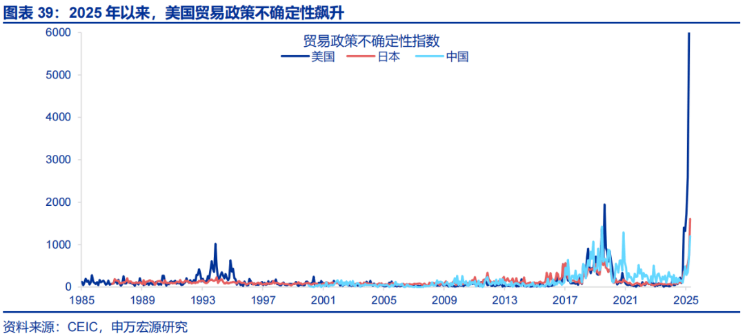 理论上,贸易政策不确定性可能推升美国金融压力、美元指数,进而影响实体偏好。与贸易、价格不同,风险偏好并不是通过实体渠道影响经济,而是通过“政策不确定性——金融压力、美元指数”的渠道影响实体消费、投资意愿。自特朗普胜选以来,美国贸易政策不确定性大幅飙升至历史高位,理论上,这可能推升美国金融压力、美元指数。需注意的是,近期美元指数弱势并非传导机制失效,而是由于美元作为避险资产的地位受损。