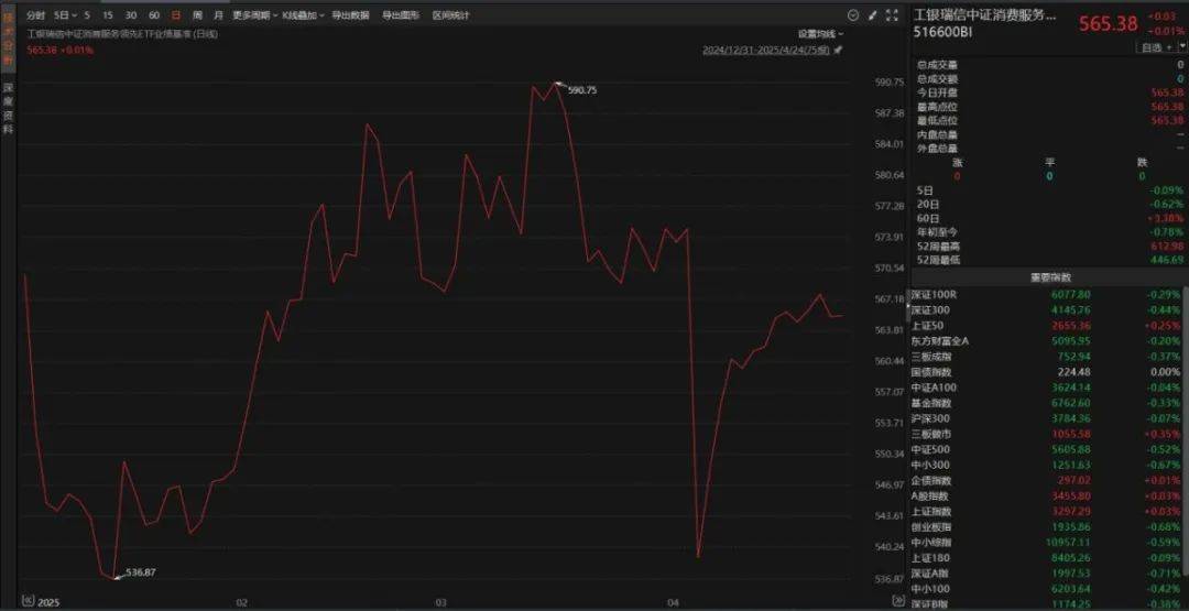 在白酒和食品饮料基础上,加入医疗医药、金融、文化传媒等板块的中证消费服务领先指数仅上涨0.06%,这与科技板块的走势形成了鲜明对比。