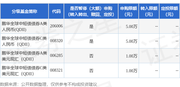 证券之星消息,5月20日鹏华基金管理有限公司发布《鹏华全球中短债债券型证券投资基金(QDII)人民币份额调整大额申购和定期定额投资业务的公告》。公告中提示,为满足投资者的投资需求,自2025年5月21日起鹏华全球中短债债券型证券投资基金(QDII)人民币份额调整大额申购和定期定额投资业务,下属分级基金调整明细如下: