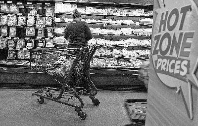 图片说明:5月13日,消费者在美国纽约一家杂货店购物。(视觉中国)