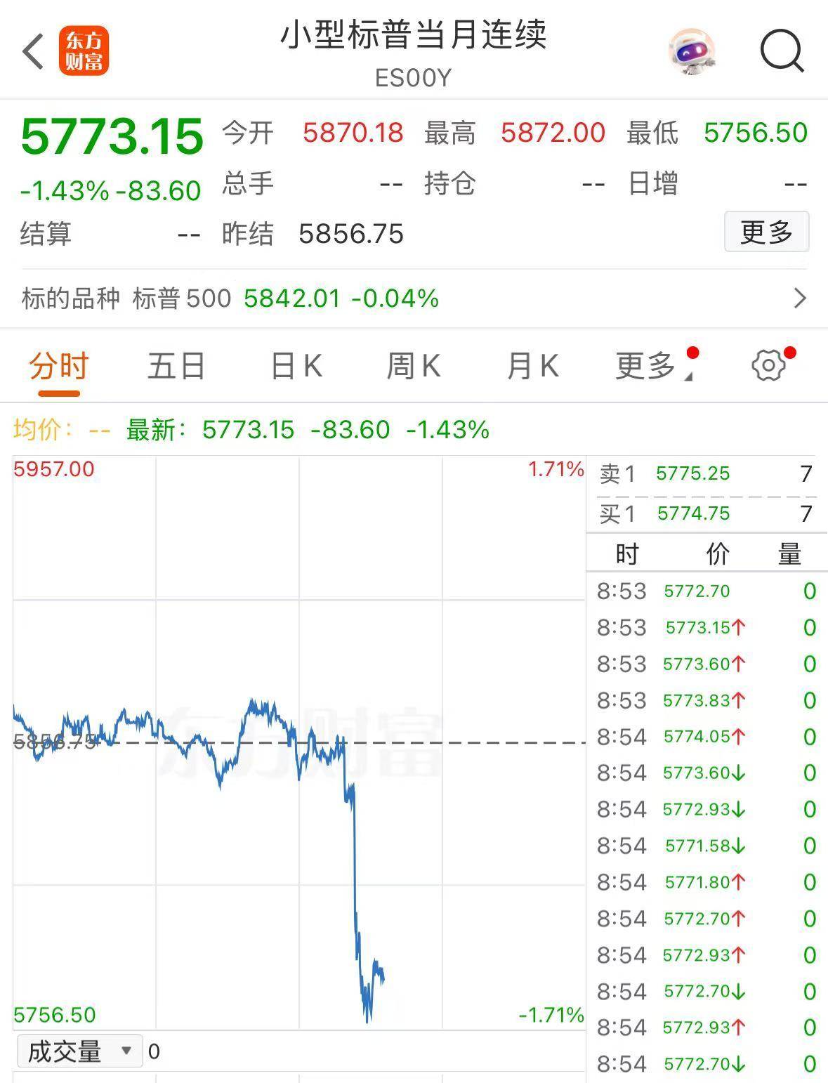 市场方面,美国股指期货大幅下跌,截至目前,道指期货跌1.16%,标普500指数期货跌1.43%,纳斯达克100指数期货跌1.87%。