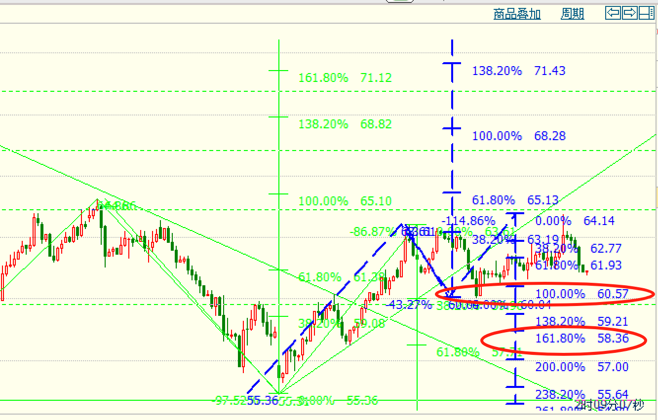 美原油,55双底大涨63以上后,短线65受阻回落,昨日最低60大关一线,短线如期回落,关注调整后再涨!