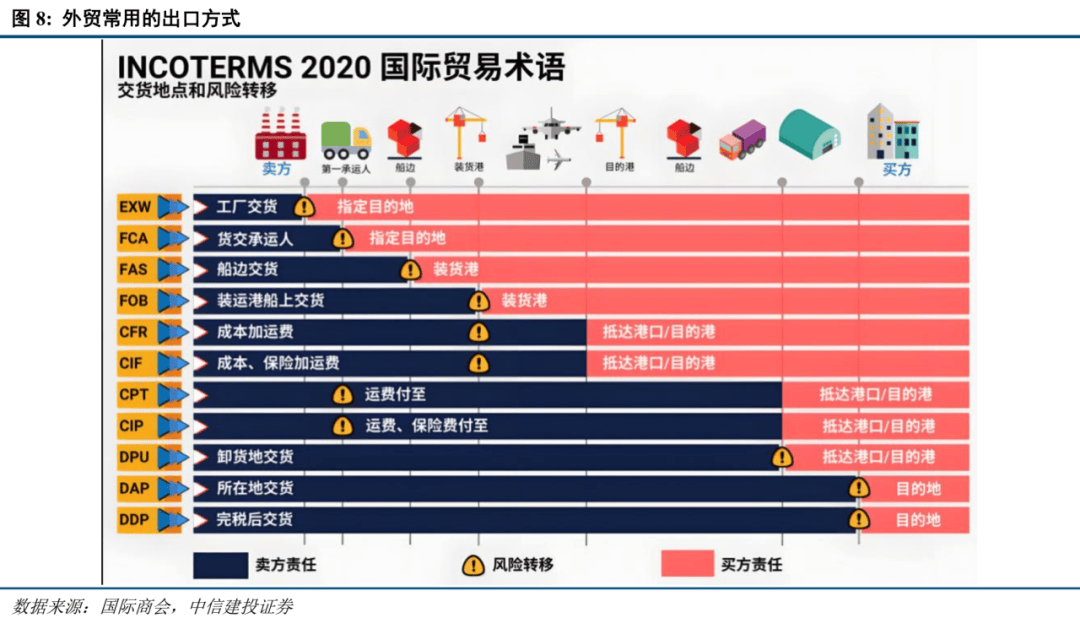 其二,变通货物运发方式,优先FOB模式。FOB模式在关税税率、运费和保险费波动不稳的市场条件下有利于卖方。FOB条款下,卖方仅需负责将货物装上船,后续运输、保险及关税均由买方承担。