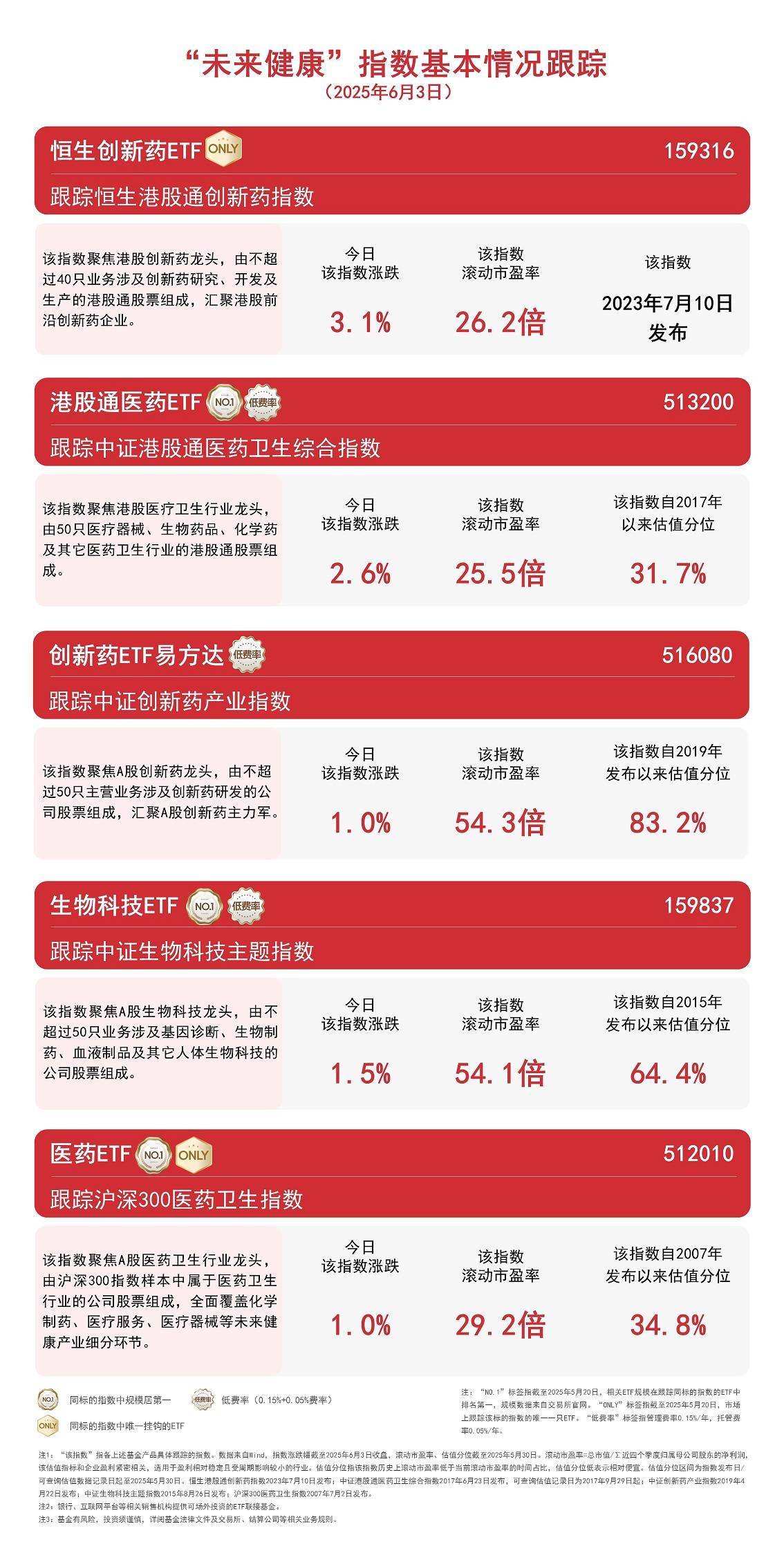 截至收盘,恒生港股通创新药指数上涨3.1%,中证港股通医药卫生综合指数上涨2.6%,中证创新药产业指数上涨1.0%,中证生物科技主题指数上涨1.5%,沪深300医药卫生指数上涨1.0%。