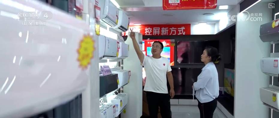 在四川仪陇县一家家电销售店内,消费者邓芙容正在选购空调。得益于以旧换新政策和厂家补贴等其他优惠政策,邓女士购买的这台一级能耗的空调便宜了不少。