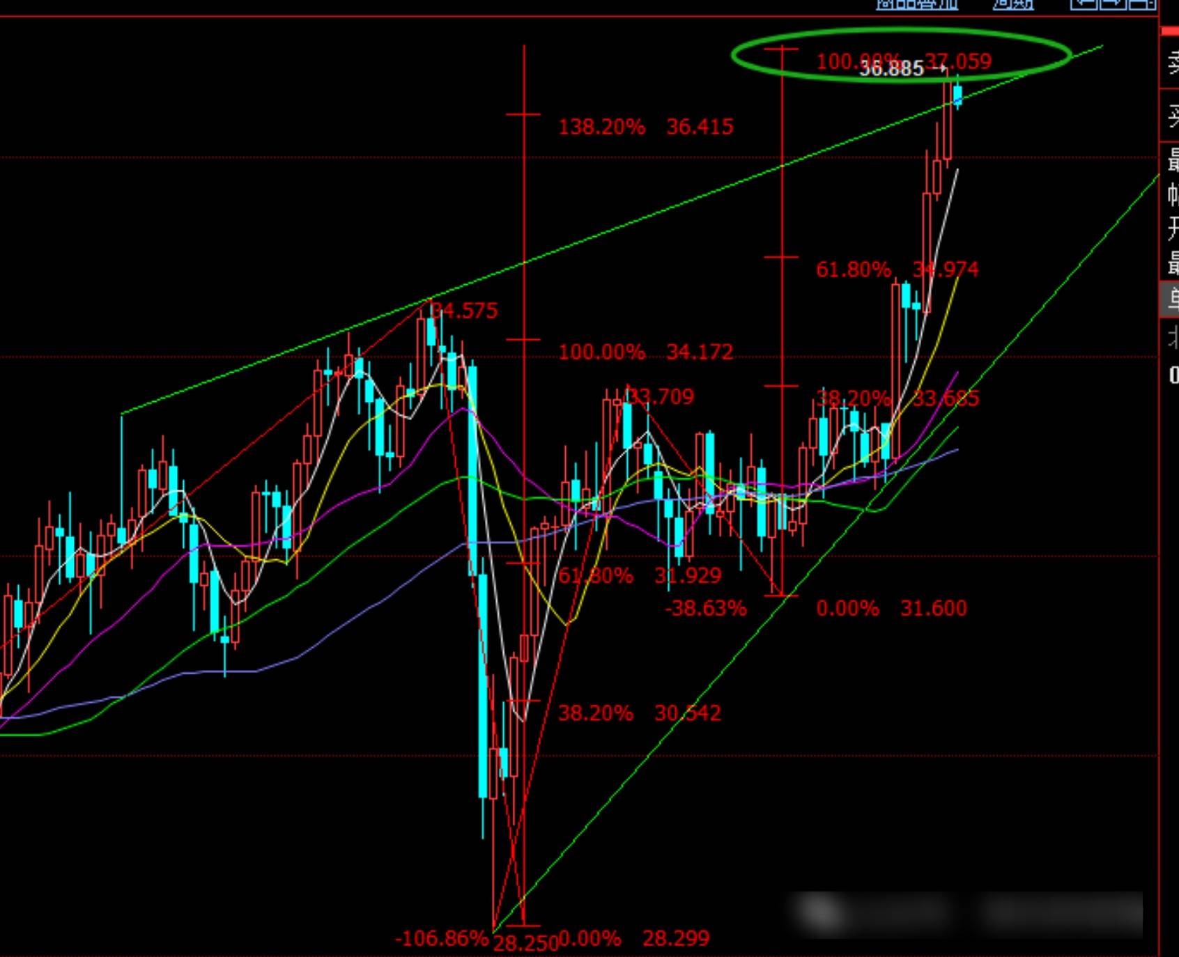 重点位置在1倍位置和1.382位置,因此的话,今日需要防范冲高回落了;建议37区域压制做空,日线收盘上去37损,目标36.2至35.6短线,下破则看34和32区域;遇损则关注1.382和1.618位置再空,多单首次回撤35.6及34.7区域可参与短线。