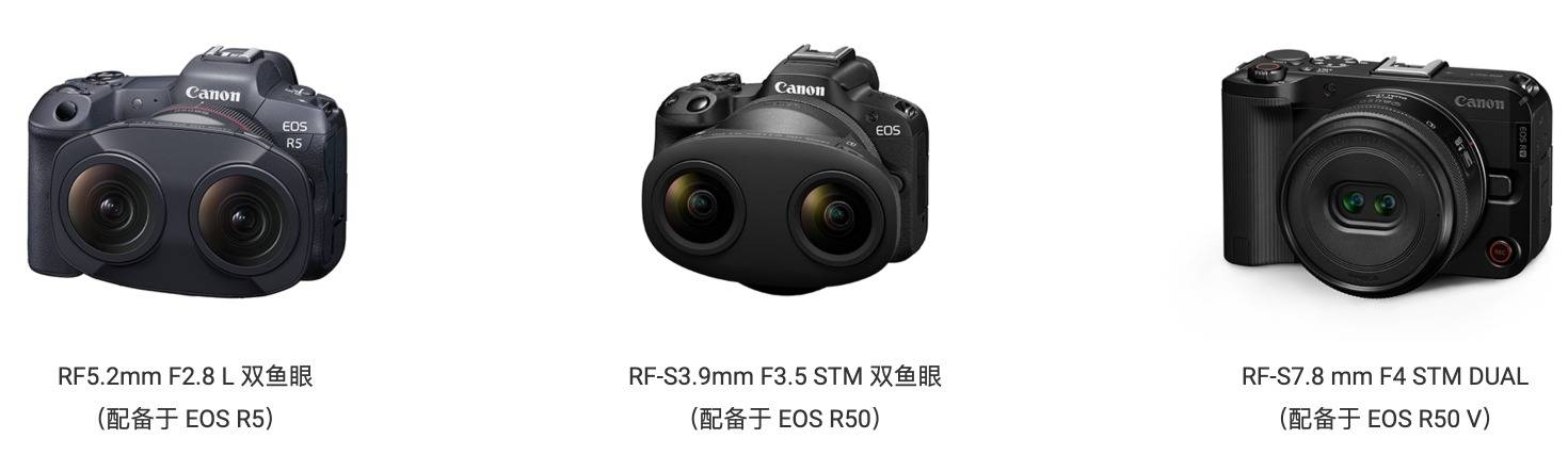 2025 年 6 月 10 日,佳能公司宣布,其两款用于 3D VR 视频的 RF 镜头——RF5.2mm F2.8 L DUAL FISHEYE(2021年12月发布)和RF-S3.9mm F3.5 STM DUAL FISHEYE(2024年6月发布)——将兼容“Apple Projected Media Profile”(以下简称“APMP”)。