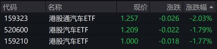 受盘面影响,跟踪中证港股通汽车产业主题指数的ETF跌约2%。