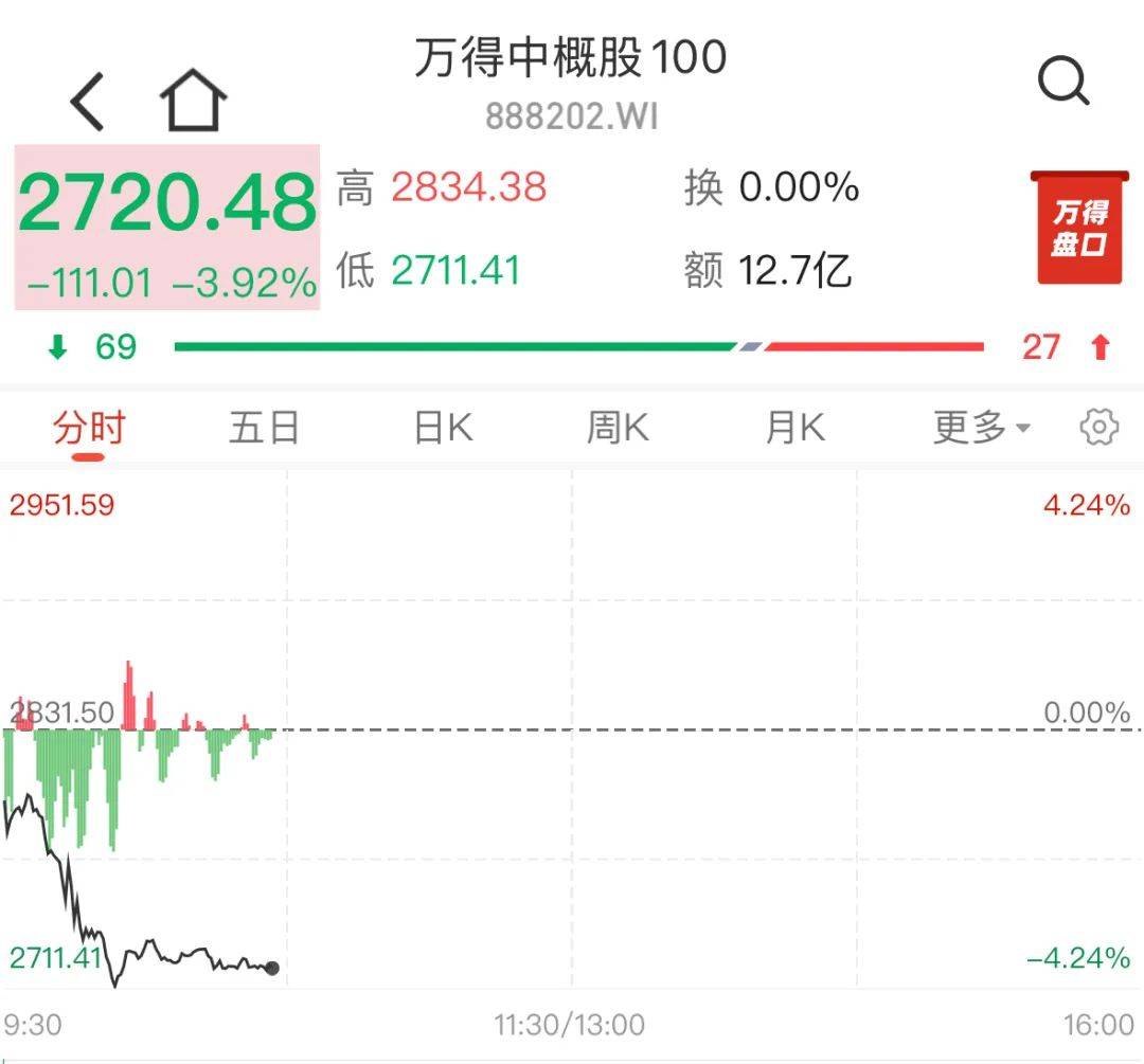 中概股表现相对弱势。万得中概股100指数跌近4%。