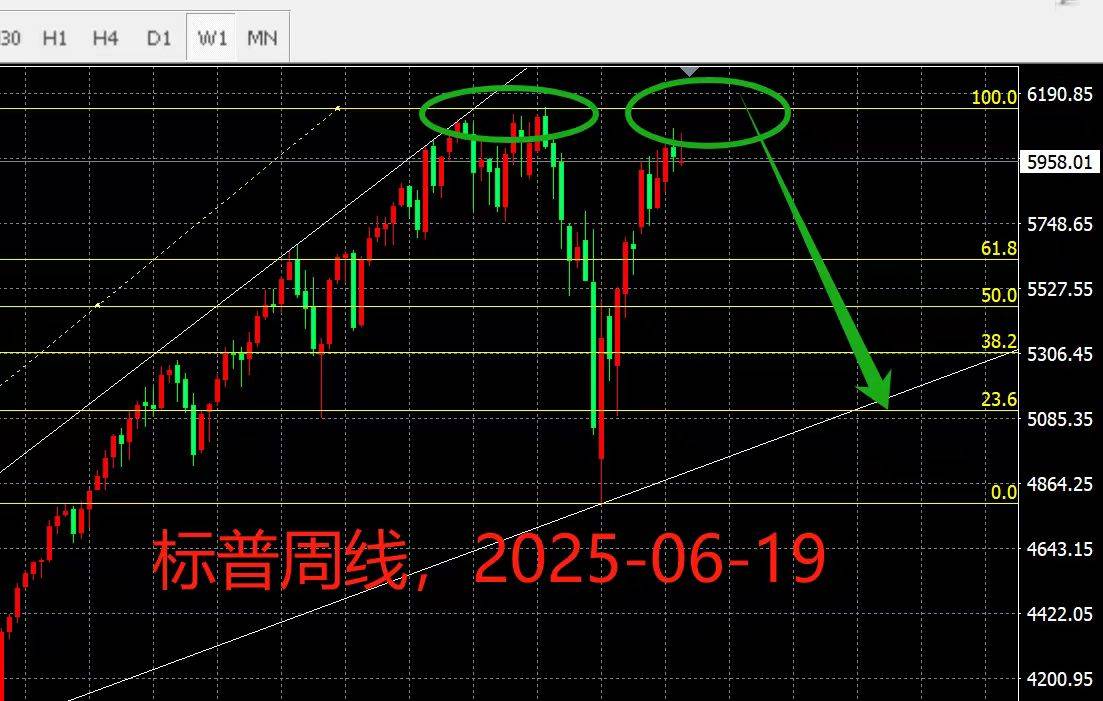 美股期货,行情符合预期,观点不变。继续持有标普期货6060空单和同步入场的道指,纳指空单,标普5920区域会破。如果意外拉升或冲击历史新高,继续布局中线空!