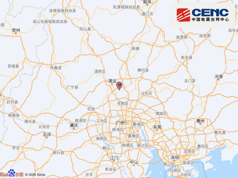 中新网6月23日电 据中国地震台网正式测定:6月23日18时48分在广东清远市清城区(北纬23.62度,东经113.17度)发生4.3级地震,震源深度10千米。