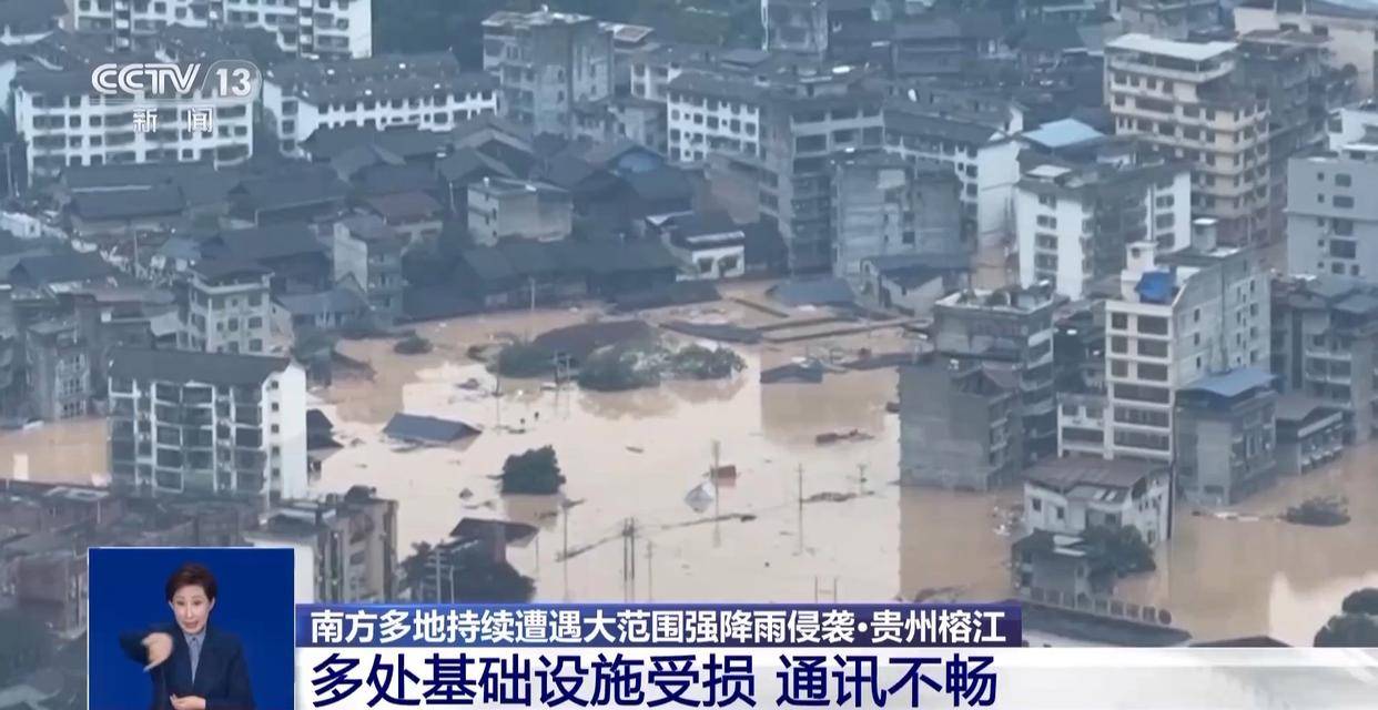 榕江县城多处被淹,当地交通、通信等设施受到严重影响。