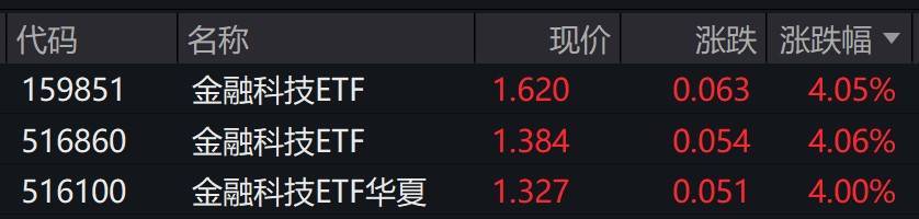 受盘面影响,跟踪中证金融科技主题指数的ETF涨超4%。