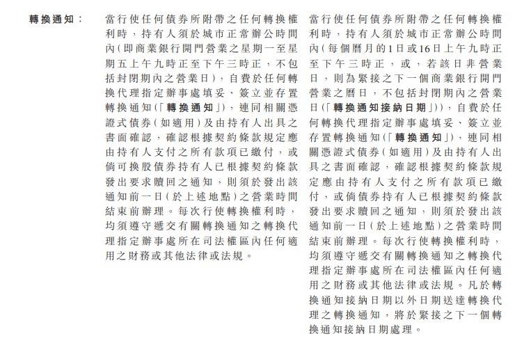 债券补充契约一经签立及交付,将按比例向持有人发行及分派增发债券。债券契约(包括所有展示文件)中所有「2027年到期3.0%可换股债券」之表述,均将修订及重述为「2029年到期1.5%可换股债券」。有关本公司将发行之增发债券详情,请参阅下文「根据一般授权发行增发债券」一节。