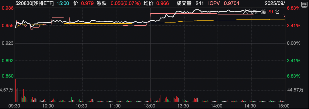截至记者发稿,沙特全指上涨4.42%,多只权重股权涨幅超过9%。