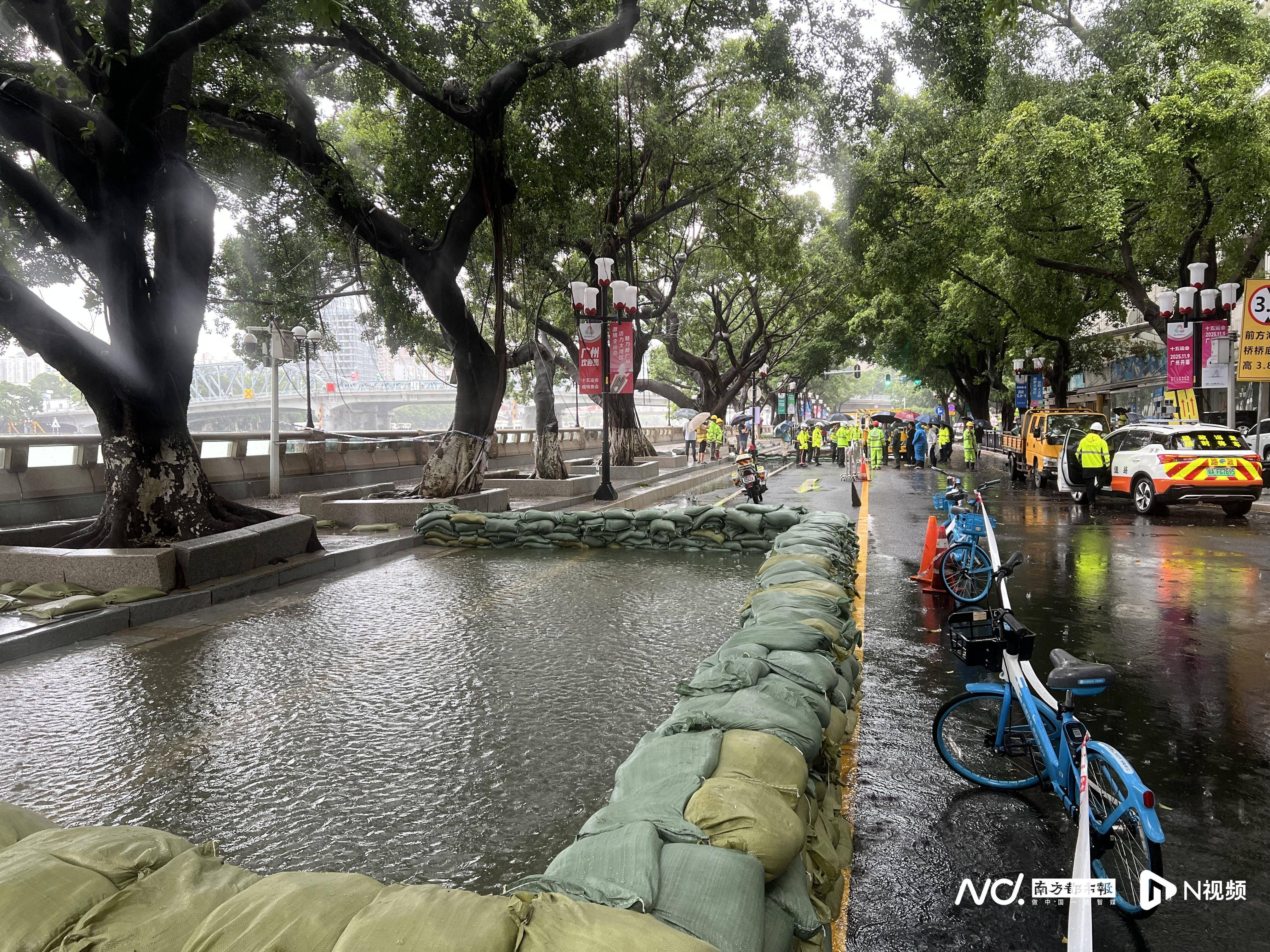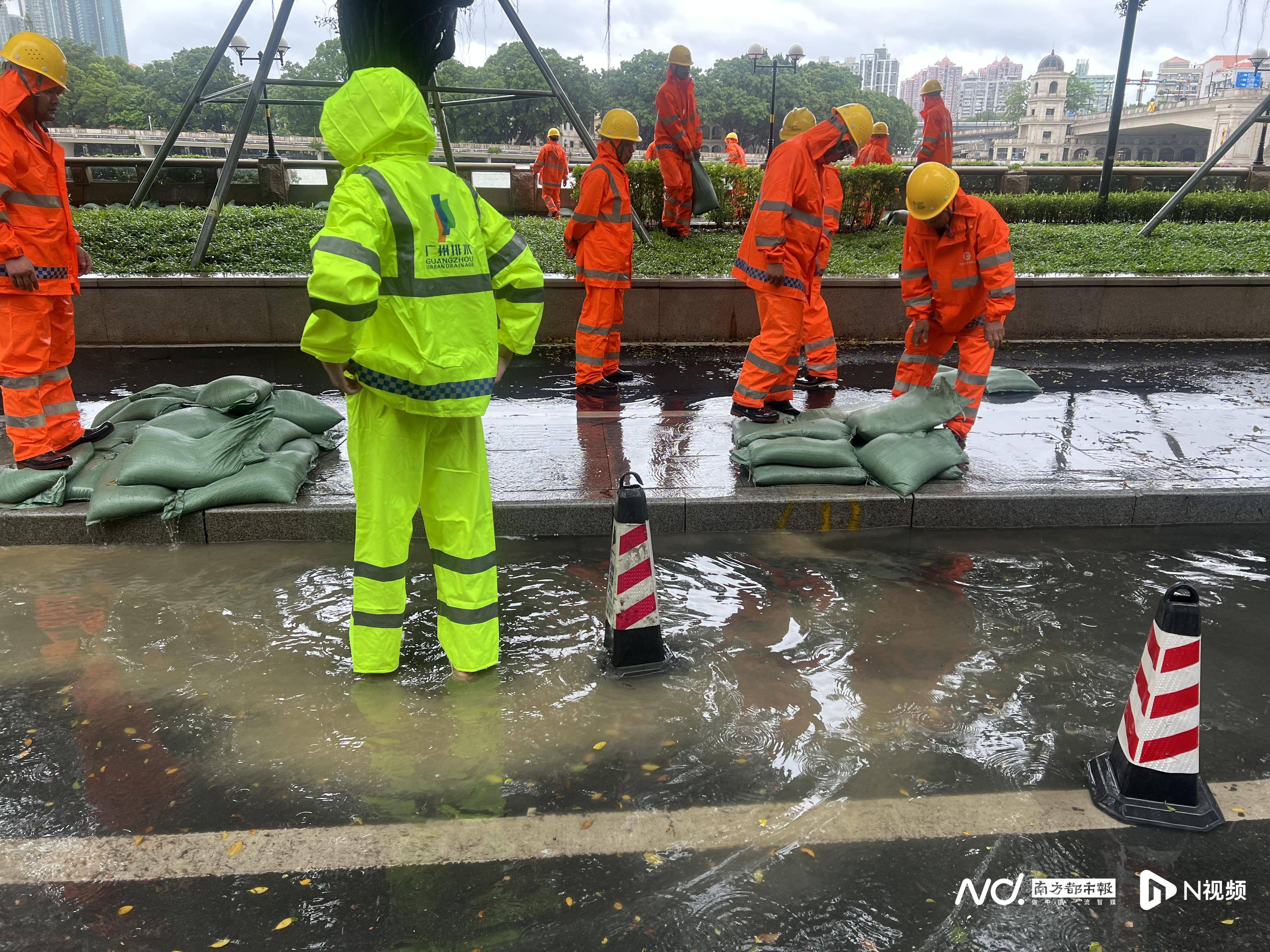 南都N视频记者巡访一江两岸,包括沙面岛、二沙岛、阅江路、临江大道以及多条主干道隧道等低洼处均有市水投集团排水公司、各区市政工程单位派员值守。