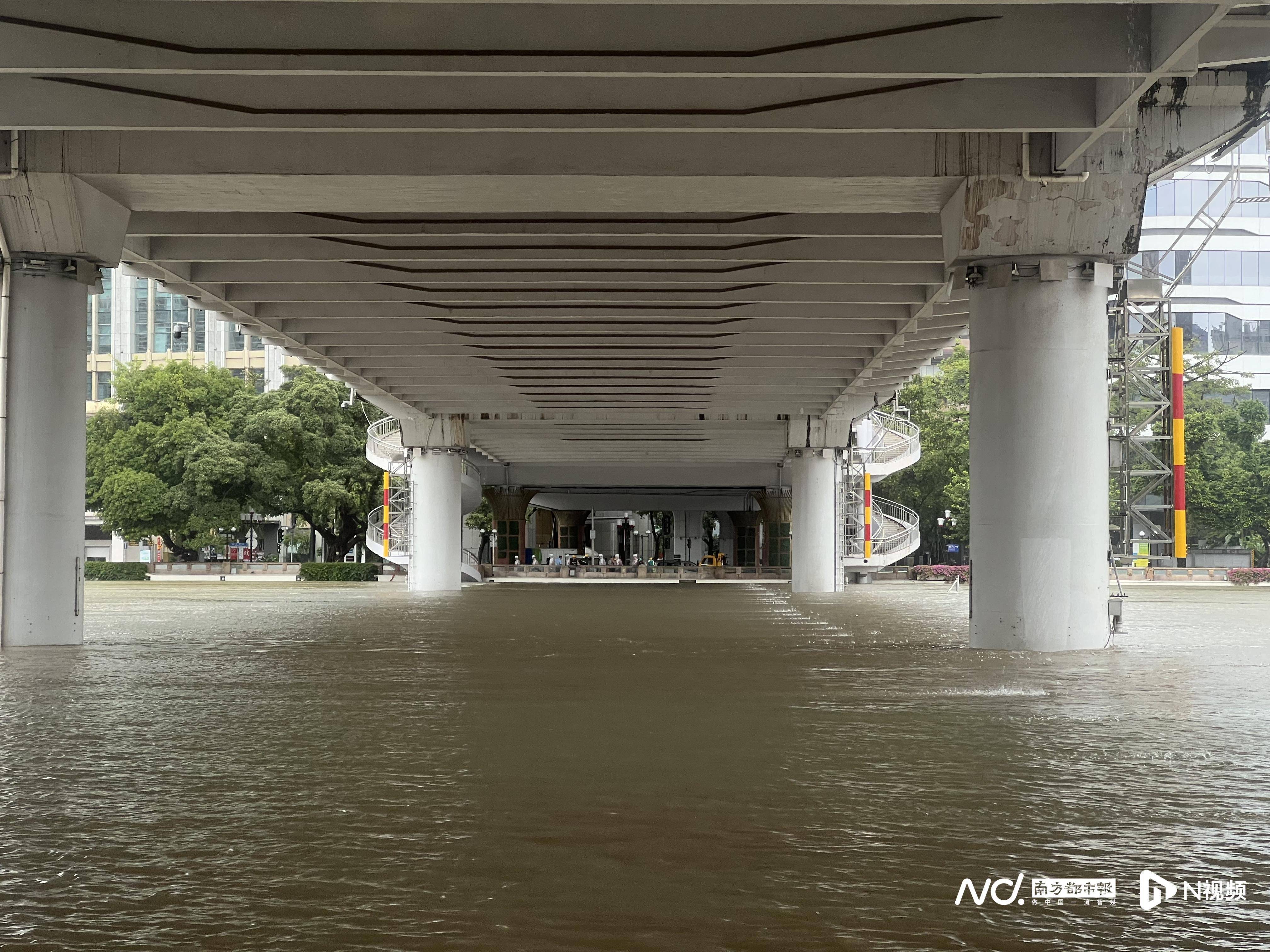 海珠区滨江西路,人民大桥桥底有江水倒灌。