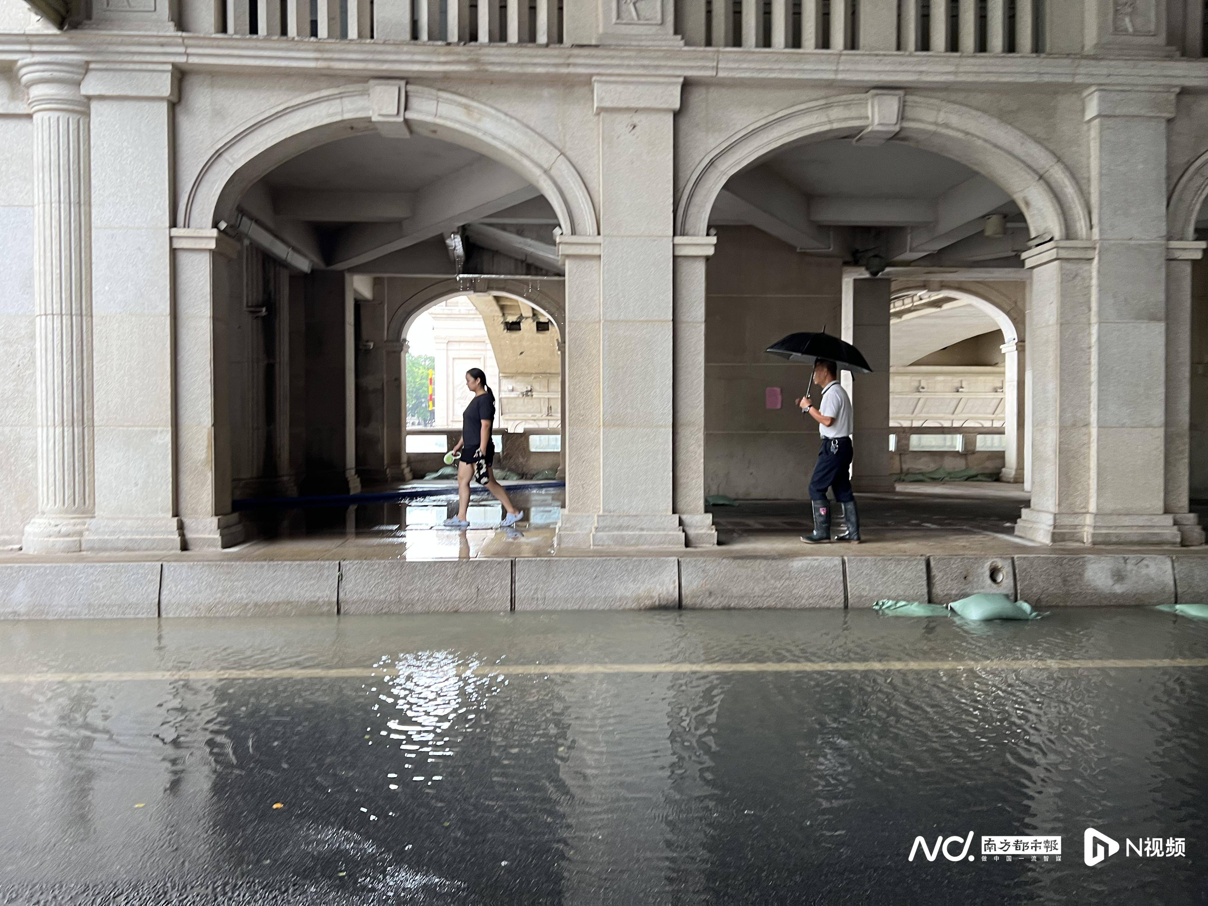 荔湾区沿江西路,广州海关大楼被江水倒灌。