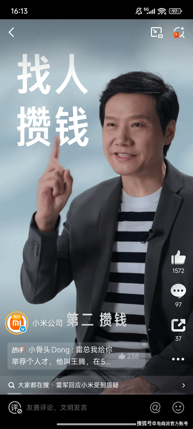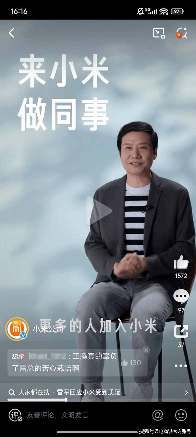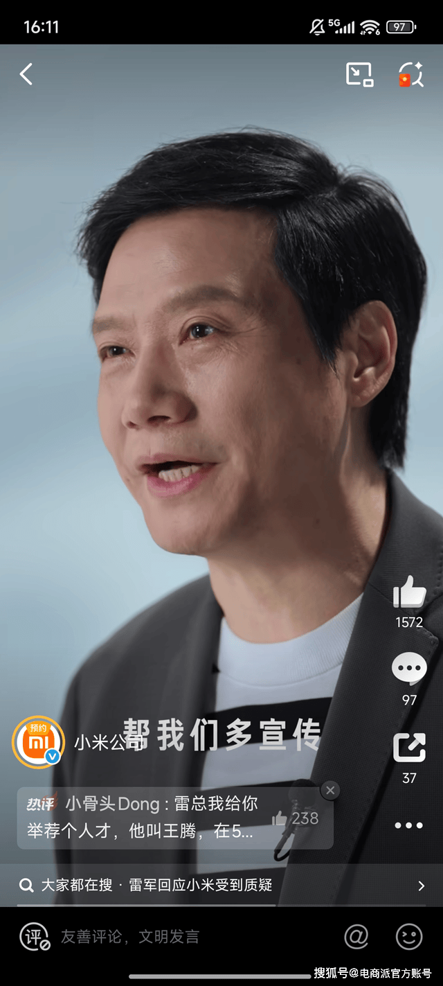 很有意思的是,在这条视频底下,有条热评称:“王腾真是辜负了雷总的苦心栽培啊。”