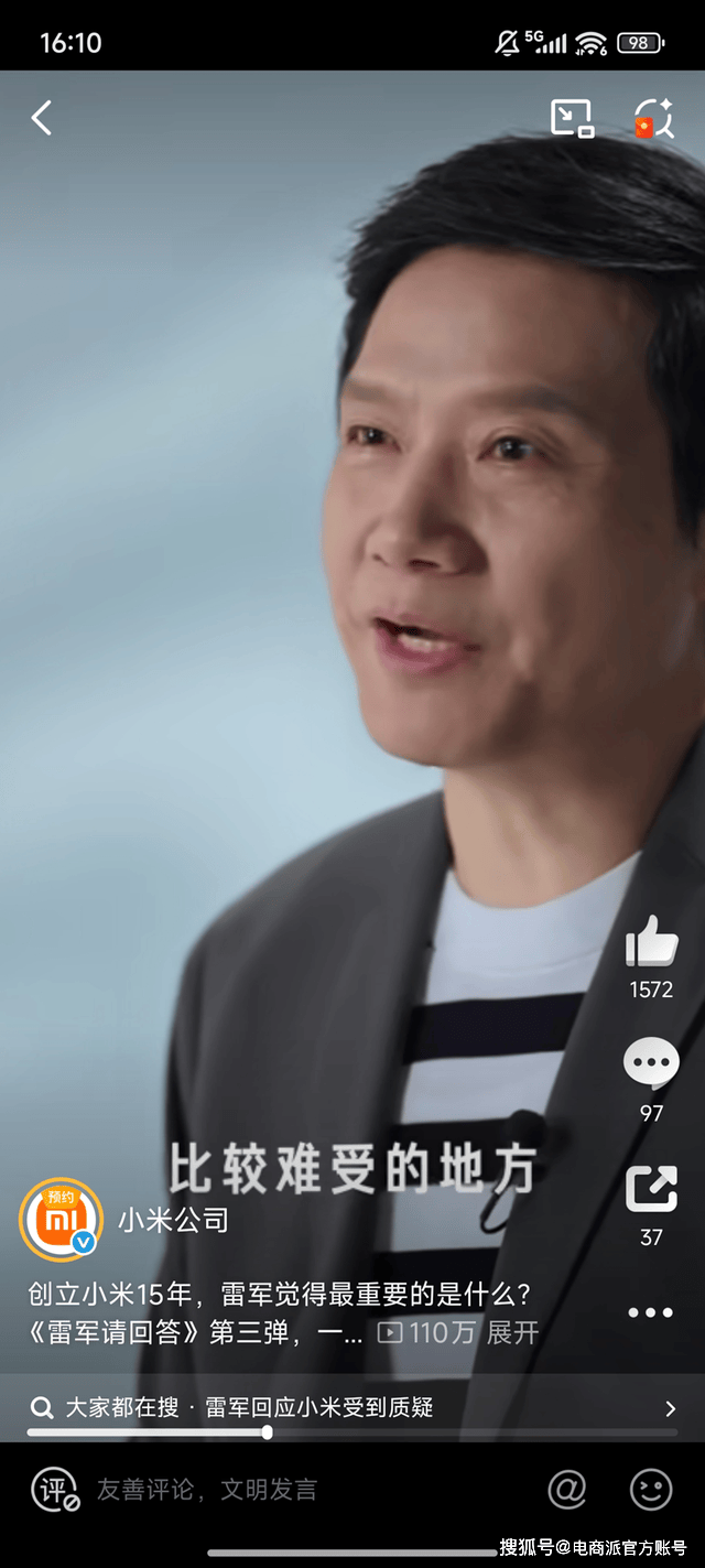 不过他也表示:“我们也一直用实际行动来改变大家的印象。我举个例子,前几年黑我们组装厂的人特别的多。去年我们小米的手机智能工厂、汽车智能工厂投产以后,一下子再黑我们组装厂的人就几乎没了。所以在这里也希望大家帮我们多宣传,多解释。”