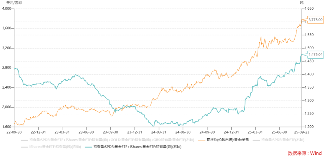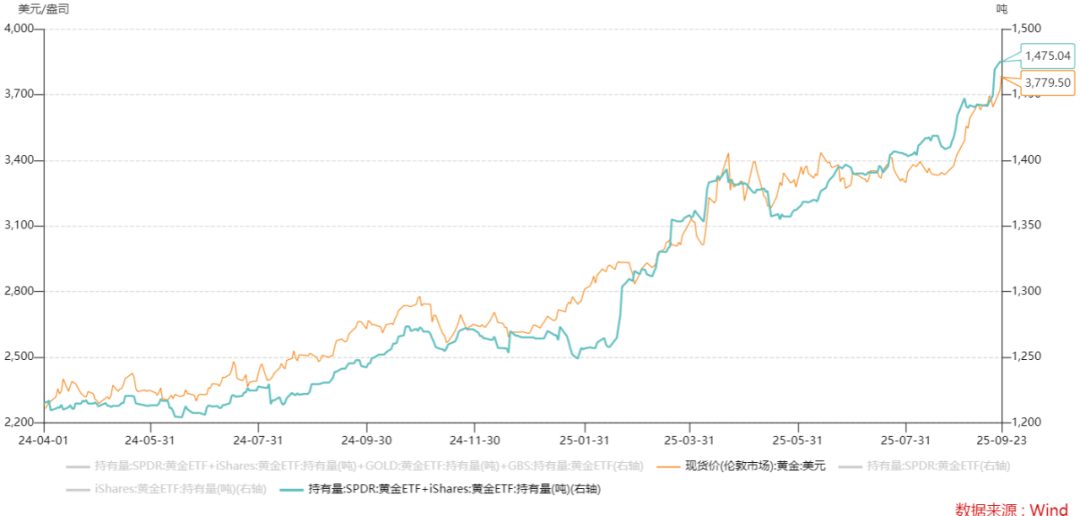 有意思的是,随着央行购金活动趋于稳定,从2024年4月开始,黄金价格再度与黄金ETF持仓量建立起极强的相关性,特别是2025年3月以来的黄金价格与ETF持仓的关系——随着ETF持仓量的持续上涨,黄金价格随之飙升。