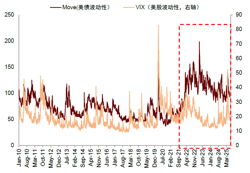 在美元是当代货币体系核心的情况下,美国国债是这个时代最核心的安全资产,而MOVE的整体性抬升,意味着美债的安全性受到了极大的损害。