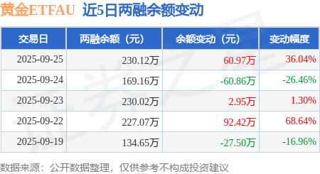 证券之星消息,9月25日,黄金ETFAU(518860)融资买入448.99万元,融资偿还388.03万元,融资净买入60.97万元,融资余额230.12万元,近20个交易日中有11个交易日出现融资净买入。