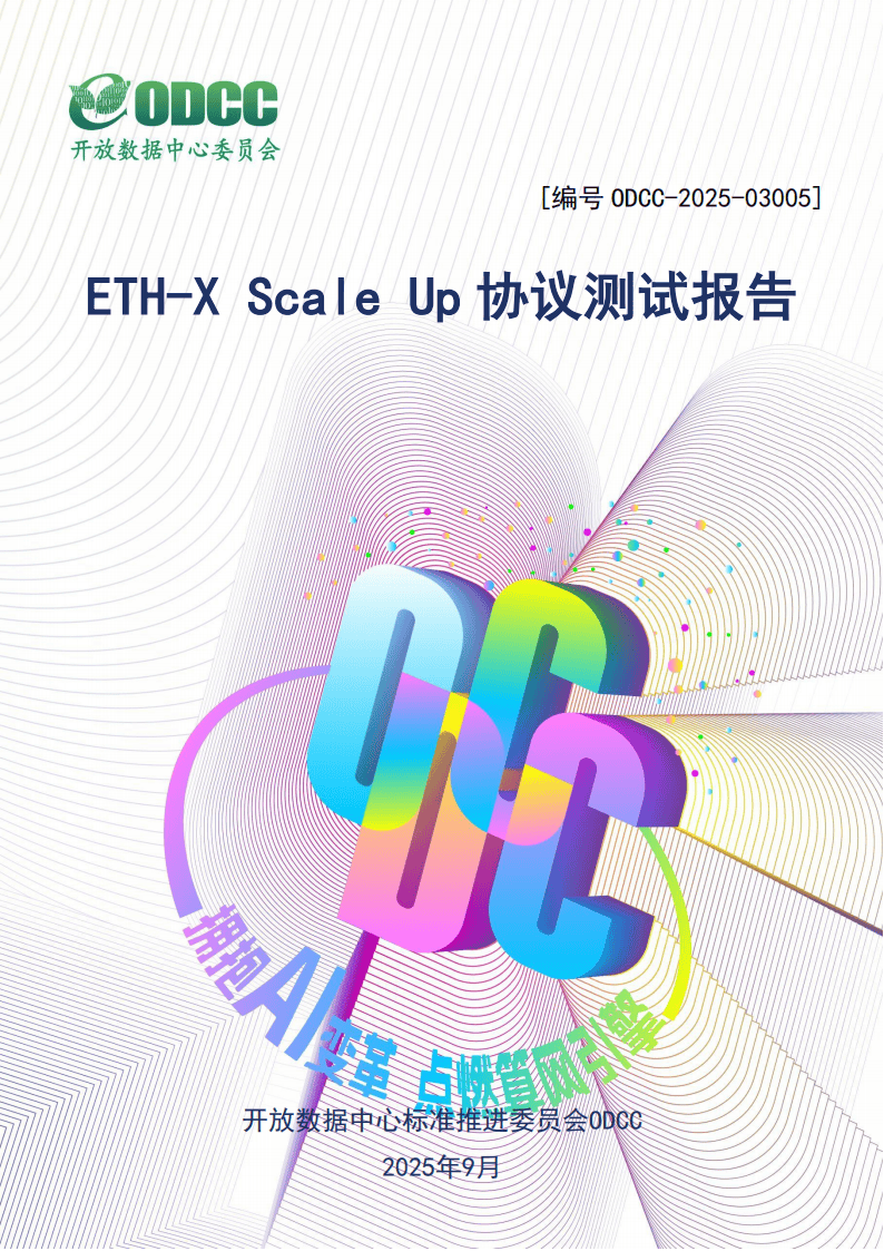 开放数据中心委员会(ODCC)发布的《2025年ETH-X Scale Up协议测试报告》(编号ODCC-2025-03005),依据《ETH-X Scale Up互联协议规范》,通过原型验证平台实现协议全栈功能,与高性能交换机组网测试,系统验证了该协议在scale-up场景下的可行性与性能优势,为工程优化与部署提供量化依据。
