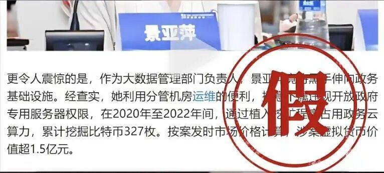 昨天(9月25日),洛阳市宜阳县官方微博发文,经调查,贵州省纪委已辟谣,文章《比特币女厅官景某某:327枚比特币背后的疯狂贪腐路》系AI工具生成,未经核实发布不实信息。网信部门联合属地公安部门迅速开展处置工作,宁某某对违法行为供认不讳,公安机关依法对其予以行政处罚。