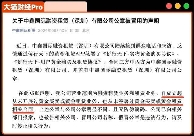 中国黄金第一时间切割,说没做过黄金租赁业务,也没签过相关合同,所谓的合同上的章,也是被冒用的,公司已经报案了。