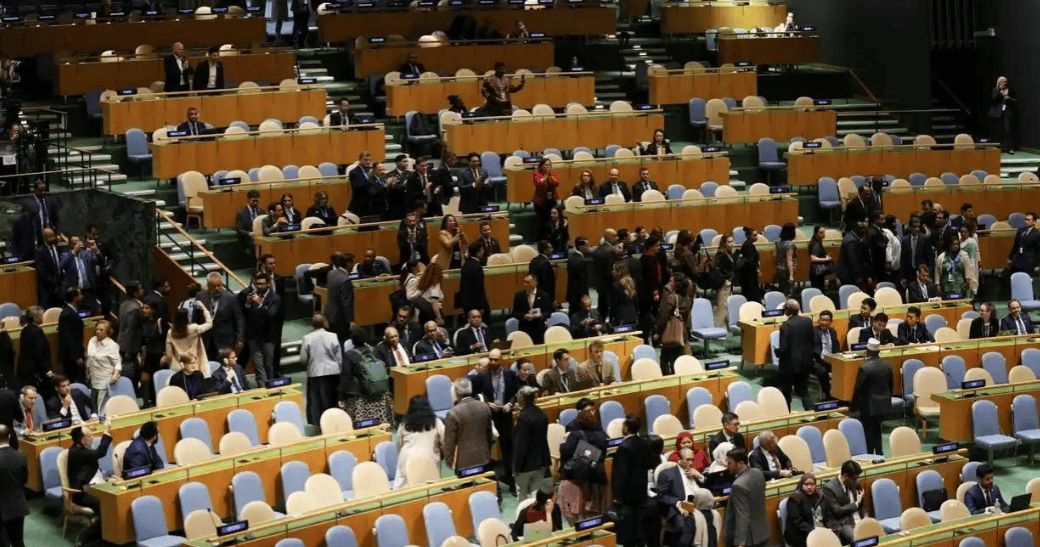 但不出意外的是,以色列依然不为所动,而面对内塔尼亚胡的逆行,国际社会也当即做出反应,9月26日,在内塔尼亚胡参加联合国一般性辩论期间,其还没来得及开口,多国代表直接选择集体退场抗议。