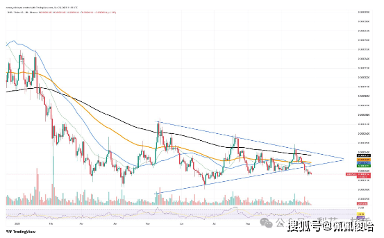 柴犬的价格已跌至 0.00001105 美元,且未显示出任何企稳迹象,标志着又一个时期的巨额压力。在跌破其持续数月的对称三角形结构后,已无任何明显的支撑位可以阻止其下跌。由于缺乏成交量、动能或任何明显的买方力量,SHIB 的价格似乎即将再次下跌零。