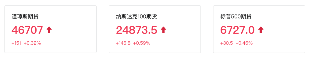 美股盘前,三大股指期货上涨,道指期货涨近0.36%、纳指期货涨近0.6%、标普500期货涨近0.5%。