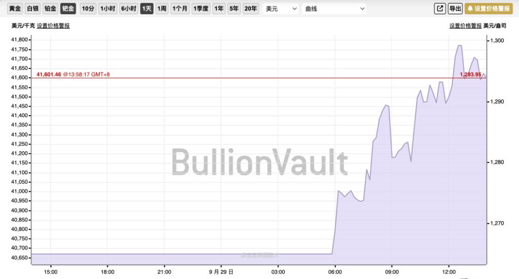 钯金上涨 2.2% 至每盎司 1,297.67 美元。