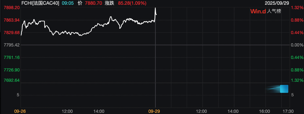 欧洲斯托克50指数开盘涨0.33%,英国富时100指数涨0.34%,法国CAC40指数涨0.36%,德国DAX指数涨0.41%。