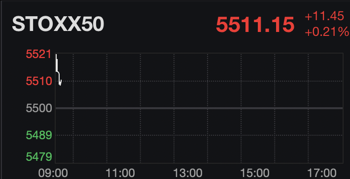 受到美国政府可能停摆的影响,欧洲斯托克50指数开盘涨0.33%。