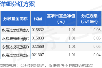 证券之星消息,9月30日发布《永赢宏泰短债债券型证券投资基金分红公告》。本次分红为本基金2025年度的第3次分红。公告显示,本次分红的收益分配基准日为9月9日,详细分红方案如下: