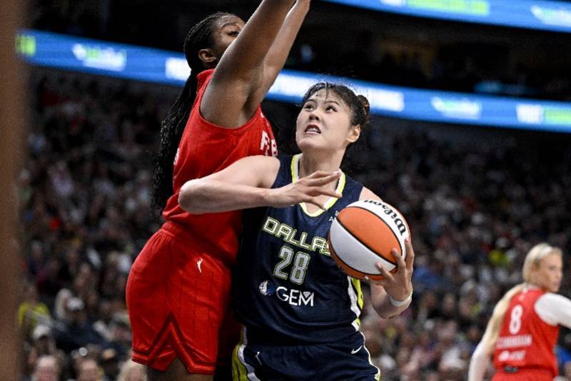 6月27日,达拉斯飞翼队球员李月汝(前右)出战WNBA常规赛中。 新华社发