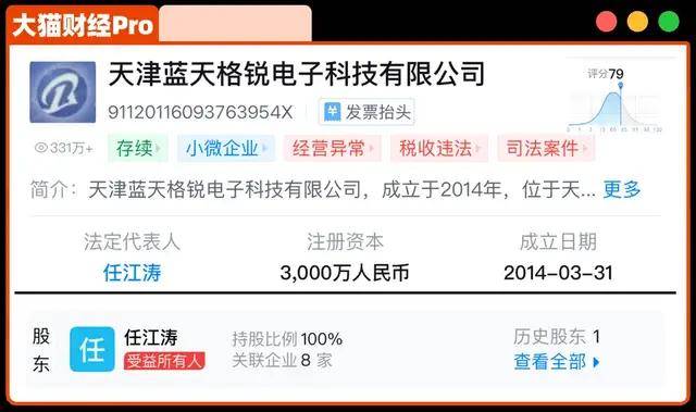 她开了一家天津蓝天格锐电子科技有限公司,号称高科技,其实就是卖手环,无论产品还是技术,根本没啥含金量。