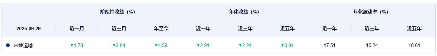 再看两个指数过往表现,两个指数过去几年表现都比较一般,不管是近一年、近三年,还是近五年,年化收益均为负数,其中国证交通运输行业指数的表现稍好于中证内地运输主题指数。