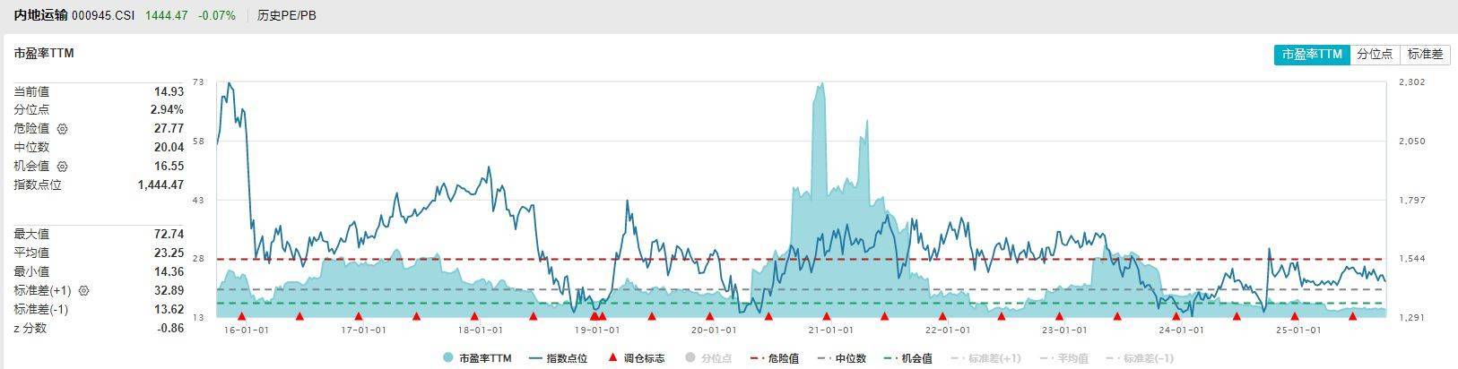 再从指数估值来看,Wind数据显示,目前国证交通运输行业指数和中证内地运输主题指数的市盈率TTM均处于历史5%分位以下。
