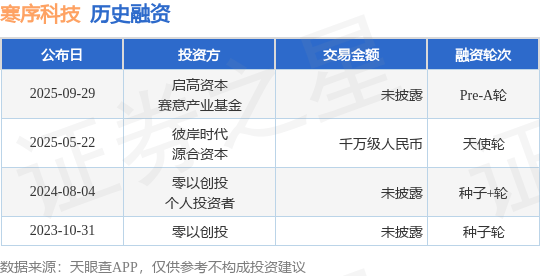 证券之星消息,根据天眼查APP于9月29日公布的信息整理,寒序科技(北京)有限公司Pre-A轮融资,融资额未披露,参与投资的机构包括启高资本,赛意产业基金。