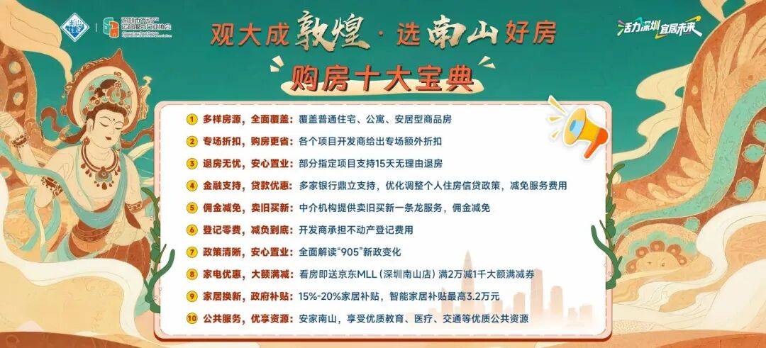 • 10月1日起连续8天,“南山好房节”国庆专场将在南山博物馆举办。本次活动覆盖普通住宅、公寓、安居型商品房,不仅有多家开发商给出了专属折扣,还有中介机构推出的“卖旧买新”一条龙服务与佣金减免,多家银行也同步优化调整个人住房信贷政策并减免服务费用。部分指定项目还支持“15天无理由退房”