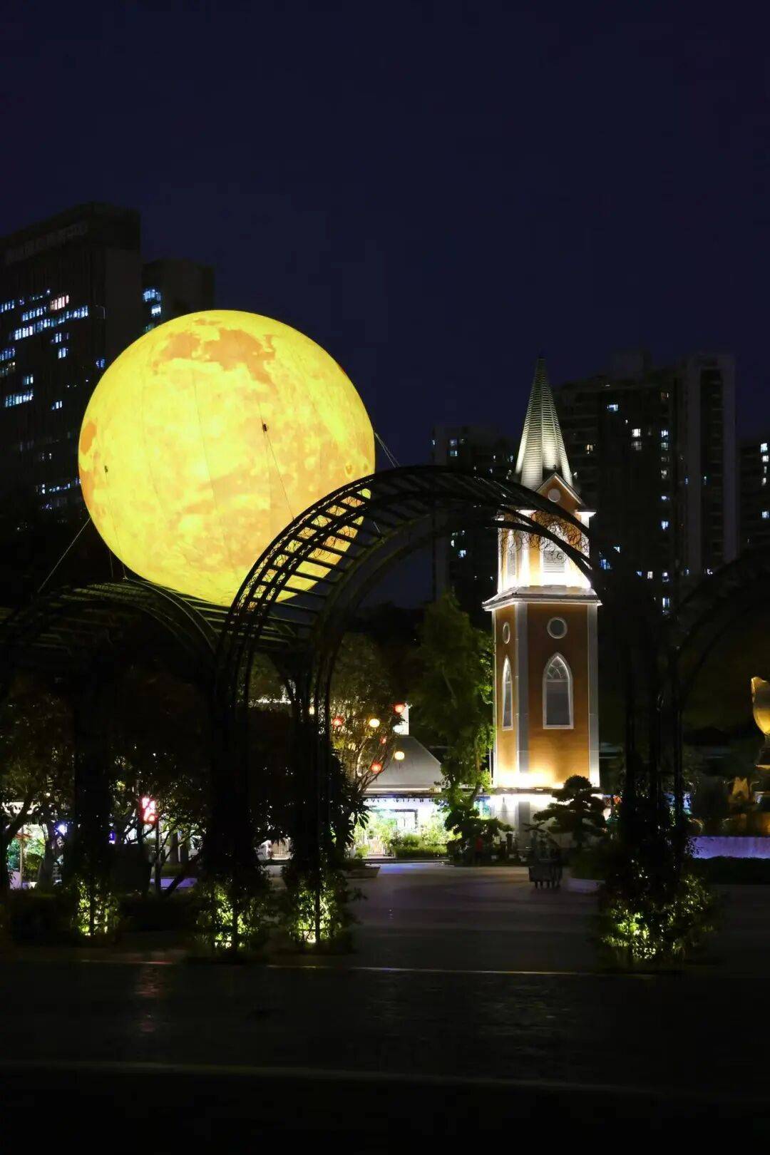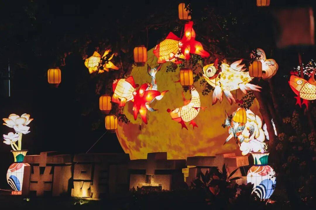 南头古城在陆丰市皮影戏传承保护中心(陆丰市皮影博物馆)支持下,打造了“戏影时光 花好月圆”的艺术装置。并通过全新的设计语言选取5幕经典剧目,以新颖呈现《嫦娥奔月》《龟与鹤》《猴子捞月》《飞天》《鸡斗》。