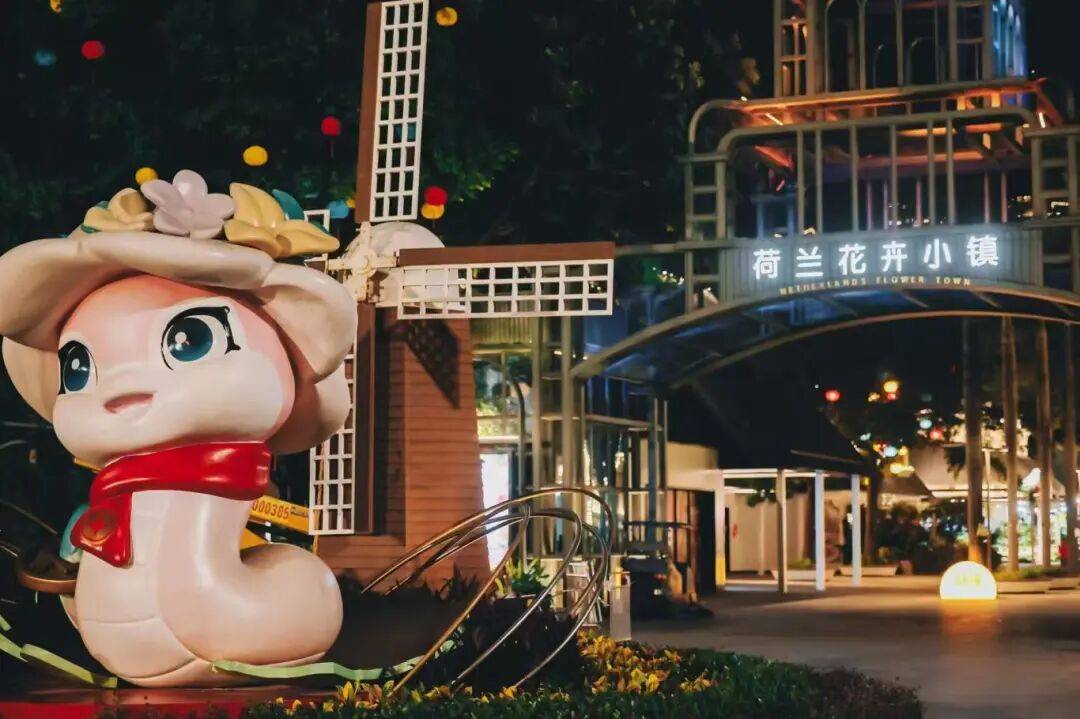 在中山公园的灯火百家主题灯展,中国百家姓装点在传统灯笼之上;另一头的荷兰花卉小镇,里里外外也被彩色花灯装点。