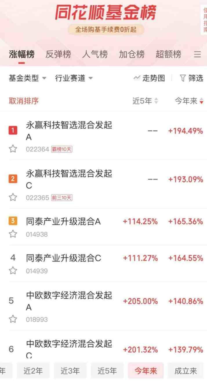 据同花顺数据,任桀管理的永赢科技智选基金,年初以来涨幅约194.49%,夺得年内目前为止所有基金收益率的榜首。年初以来基金榜前20名收益率均超110%。