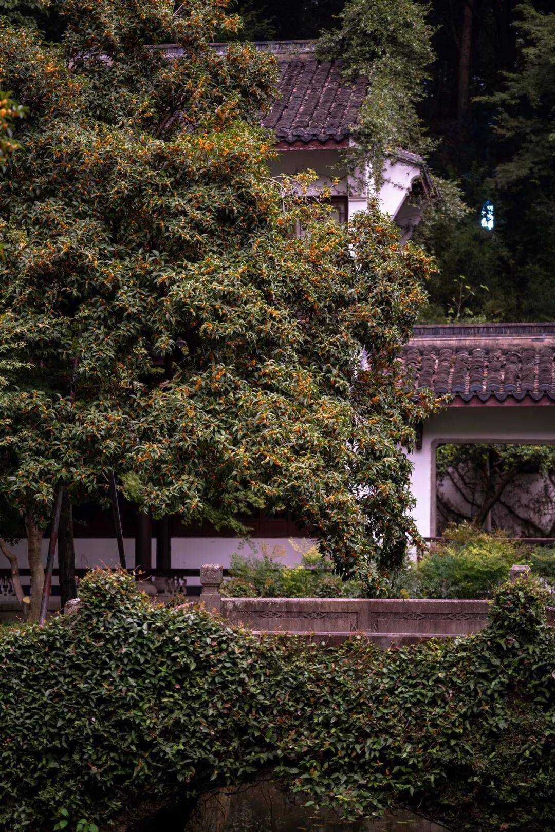 在虎跑公园能见到“古风版”桂花,可谓是最惊喜的赏桂地。从虎跑公园正门开始,整个公园似乎拢住了香味,弥漫着桂花香。公园正面两侧就有高大的桂花树,映衬着门头,抬手就能和这份秋日仪式感同框。