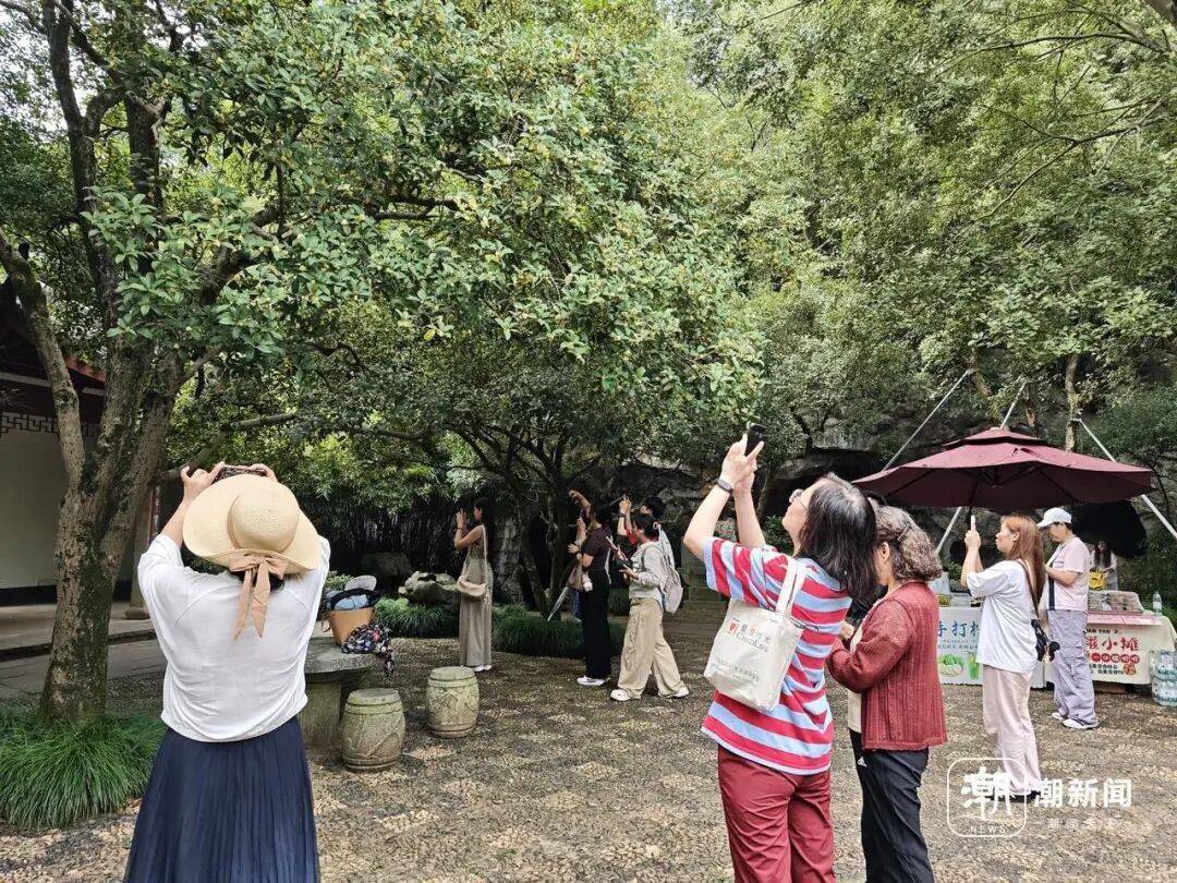 穿梭在满觉陇的步道上,能听到天南地北的口音。一位年年都来“报到”的杭州本地阿姨笑着说:“我们每年都来满觉陇,今年当然也不例外。”更有专程从东北远道而来的游客,被这香甜气息吸引,精心挑选着桂花蜜、桂花酱等特产,“带点正宗的桂花味道回去,给家里人都尝尝!”