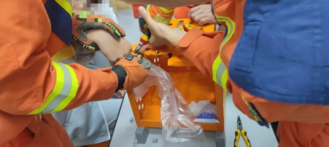经过消防救援人员的谨慎操作,该学生手指成功脱困。